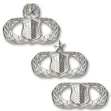 Wear the senior badge after 7 years in the specialty and the master badge after 15 years in the specialty. Enlisted: Wear the basic badge after completing technical school.