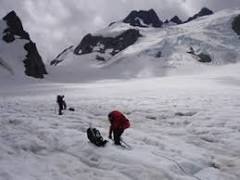 Sometimes a ladder bridge is necessary to cross the main “channel,” which frequently changes position. Note that cairns may mark the locations where you should enter and leave the boulder fields. Once across Rocky Creek, the terrain changes as you enter old-growth forest, and the grade stiffens a bit. Take in the mountain hemlocks and yellow cedar that surround you as you switchback up and to the northwest. At two miles, you reach the second junction with the Scott Paul Trail, at 4400 feet. Continue left, and enter Morovitz Meadow, where Koma Kulshan presides over fields of heather, mountain ash, wildflower, and vaccinia berry bushes that blaze flaming red in fall.In 0.4 miles come to the junction with the Railroad Grade Trail, which leads to the Easton Glacier and is a frequently-used route for summiting Baker. Stay left and descend to Bell Pass Junction, passing through boggy meadows. After 0.6 miles keep left and ascend again for 0.7 miles over rocky tread to Park Butte, which now dominates the view opposite Koma Kulshan.