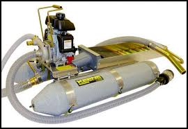 It was with all of those criteria in mind that we developed our line of dredges, most of which have seen many recent improvements. All of our dredges are "flare" dredges. The flare dredges are easily distinguished from the dredges that use a hopper, or "header box", in that they incorporate a large expansion chamber or "flare" which is located between the dredge's power jet and the sluice box.