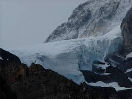 It was a time of reverie. The glaciers high on the mountains were gleaming white and the new snow above them added to the beauty. Below is a telephoto shot of the high glacier shown in the view at right. Above the glacier is a new dusting of snow brought in by the storm that we had early this morning. We saw two ducks near the shore, diving for food and quite accepting of our presence. We saw the ducks do multiple dives in the clear water, and you can see that the water beads up on this duck's back after the dive. The phrase "like water off a duck's back" was in operation before our eyes. The path led along the lake shore with continuous views of the big peaks and glaciers above us. There were lots of small streams flowing into the lake. For our trip out, we had the trail to ourselves at about 8am. We met people from several countries on the way back in. I was intriqued with the structure of the high hanging glaciers. That's not a thing we see very often. After the early storms, we were pleased to see a little blue sky, and you can see evidence of the light dusting of new snow above the glacier.