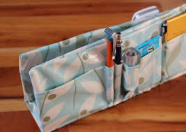 Time to load up with all your much needed, and not-so-needed stuff! The interior side will keep a wide open space, in my case, for my wallet… And, the exterior edges of the organizer contains the oh-so-needed pockets!! And, inside the purse?? Organization at its best!! Just look at everything in its place. I think this project could be easily modified to hang off the arm of your couch for your remote-controls, or perhaps slid between your mattress and box spring for magazines, books, lip balm or anything else that’s getting in your way. The best part is, this project cost next to nothing to complete, as the fabric was scraps of fabric I already had, and the cereal was long gone, and the box needed recycling anyway. Give yourself an afternoon to get your own purse, bag, briefcase, or tote in order! You won’t be disappointed! Have your own go-to organizational tools? Share with the rest of the class in the comments, or on our facebook page! (For those of you who like my choice of fabric, it is Heather Bailey’s Nicey Jane in Blue).