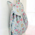 Bustle: Made with 2 yards of fabric, interfacing and ribbon or fabric for sash. Tutorial available as a free download.Mini Rucksack: Features two back straps and top handle for easy toting, foldover top flap with drawstring closure.One Backpack–Two Ways: One simple and pretty, the other boyishly fun with robot features. Free pdf download for applique.Petite Pack: Lovely bag in a simple design, features an interior pocket and adjustable shoulder straps.Ruffled: A sweet drawstring knapsack with layers of ruffles at the bottom (toddler size but not difficult to make larger).With Bias Tape Straps: Canvas lined bag with two pockets and fabric bias tape straps.For Toddlers: Envelope style mini-backpack with elasticized straps, nice & roomy front pocket.String Backpack How-To: Whip up this easy bag with fabric, cord, fusible interfacing and grommet hardware.Happy Face Bag: Nice and sturdy toddler-size bag made with corduroy, has adjustable shoulder straps and cartoon facial features appliqued on front.