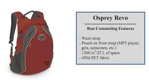 The Run Commuting Backpack Now that you have an idea of what to carry, you need an idea of what to carry it with. A backpack, of course! But not just any backpack will work. You will need one with a couple of special features. For the past several years, I’ve been using the Osprey Revo (discontinued). Osprey makes some AMAZING packs and this one – while very basic – is no exception.