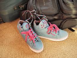 Je kunt je kleding het beste ophangen wanneer je op de plaats van bestemming aangekomen bent. Draag je zwaarste paar. Je zwaarste en grootste schoenen zullen de meeste problemen opleveren. Laat ze dus thuis (tenzij je naar een erg koude of natte plek gaat) of draag ze tijdens de reis.Een schoenentas houdt je schoenen weg bij je kleding zodat ze je kleding niet vies maken. Als je de schoenen onderin je koffer stopt, is de kans groter dat ze goed blijven liggen en minder hinderlijk zijn. Stop je schoenen vol met sokken. Maak goed gebruik van de ruimte in je schoenen. Vul je schoenen met sokken of stop je kwetsbare spullen erin. Veel mensen vergeten dat de ruimte in hun schoenen gewoon verspilde ruimte is. Je kunt ook schoenen meenemen waar je niet zo van houdt, of schoenen die bijna versleten zijn. Je kunt ze dan achterlaten wanneer je je koffer weer inpakt om terug naar huis te gaan. Knoop je schoenen vast aan de buitenkant van je koffer. Dit werkt minder goed als je ze in moet checken wanneer je met het vliegtuig gaat, maar het is een goede manier om ruimte te besparen als je handbagage meeneemt of op een andere manier reist.