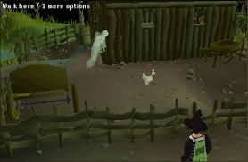 Go back and talk to Alice and you will decide to make an enchanted Ghostspeak amulet so she can talk directly with her husband. She says there is an Old Crone to the west that will be able to help. You'll need to talk to the Old Crone, who is located in the house just east of the Slayer tower. Go west past the farm patches and Fenkenstrain's castle until you the road forks. Head northwest until you reach a little shack. There you will find the Old crone. Talk to her and she will (if you have a Ghostspeak amulet with you) make you a Crone-made amulet to give to Alice's husband. Give the amulet to Alice's husband and he will offer to sell you undead chickens for 10 ecto-tokens each. Buy two chickens for 20 ecto-tokens and go back to Ava. If you do not know how to obtain Ecto-tokens, see Step 1-5 of this guide for more information. Talk to Ava in Draynor Manor and she will offer to help you make a never-ending supply of feathers. Agree to help and she will tell you to talk to the witch next door.
