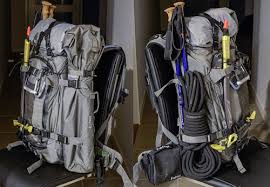 Most people I see carry the tripod on the front of the bag to center the weight, I found having it at the side moves the weight closer to your body. I have the head inside the bag to balance the weight, if I leave it on the tripod the bag feels heavier on that side.2. F-Stop Hydration Sleeve, I have a GoreTex jacket inside this, the sleeve keeps it clean and dry.3. Static rope, 15 meters. Comes in handy for accessing difficult locations.4. DMM Raptor ice axe.5. I use this to hang the camera bag from the underside of the tripod. (thanks to Rob Dickinson for the idea).6. Inside are sunglasses, phone, keys & wallet.7. 8. Fenix LD20 LED flashlight.9. Molle adapter to attach the knife sheath.11. The top compartment and the space above the ICU:Red filter for flashlight.14. Lenspen.15. CF and SD cards.16. Screwdrivers, screws and guides for the Lee SW150 filter holder.19. The 2 front compartments:I usually carry muesli bars and snakes too but I ate them all while packing the bag.22.